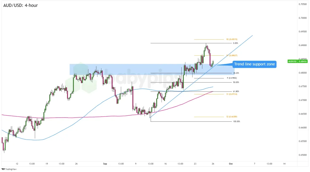 If the Aussie holds above .6850, it might retest the .6900 highs and potentially push toward the .7000 mark, indicating optimism for AUD strength.